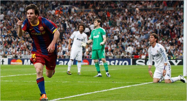 With a boy’s ardor, Messi put Barcelona in the final of the Champions League in Europe — the world’s most prestigious club tournament — to be played against Manchester United on Saturday at Wembley Stadium in London. He delivered both goals in Barcelona’s 2-0 victory in the first leg of the semifinal round against Real Madrid. This gave Messi a startling 52 goals in his first 50 matches of a season in which he also leads the Spanish league in assists. The